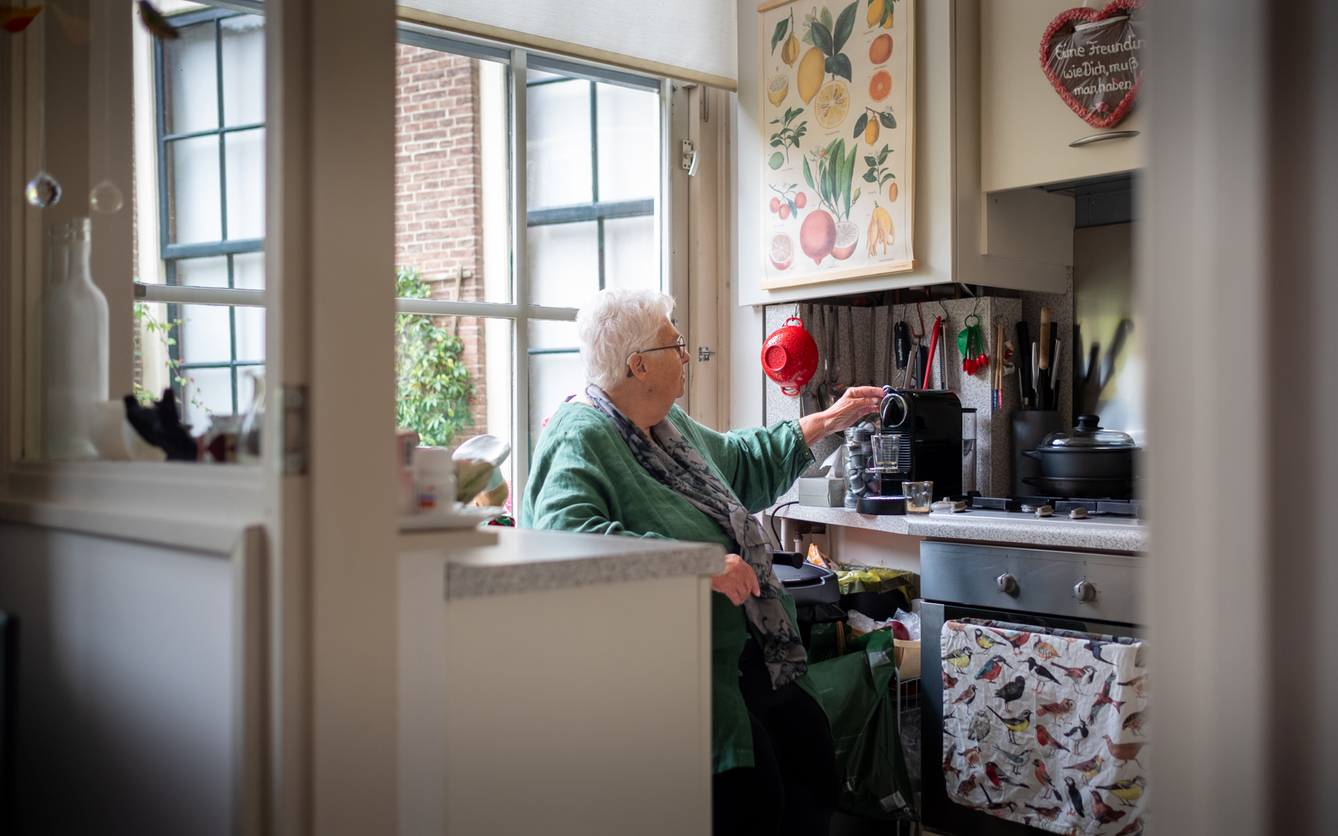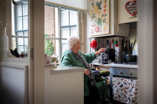 Net als mevrouw Verboom koffiezet, gaat de deurbel. Een buurvrouw vraagt naar de gezamenlijke grasmaaier. “Kijk, zo gaat dat hier dus”, lacht ze. De woongemeenschap bestaat uit jong en oud, van gezinnen tot alleenstaanden, verdeeld over 32 woningen. “Alle buren voegen iets toe aan mijn leven. Soms denk ik: goh, bijzonder dat zij dat zo doen. En een andere keer denk ik juist: ha, wat leuk! Het gaat erom dat je elkaar respecteert.”