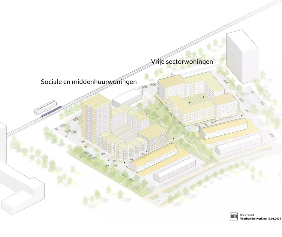 Voor het andere deel zoekt de gemeente een partij die een bouwplan ontwikkelt voor vrijesectorwoningen. Het gaat om 90 appartementen aan de kant van de Boeierflat. En om 19 eengezinswoningen die achter de woningen aan de Henri Dunantstraat komen.