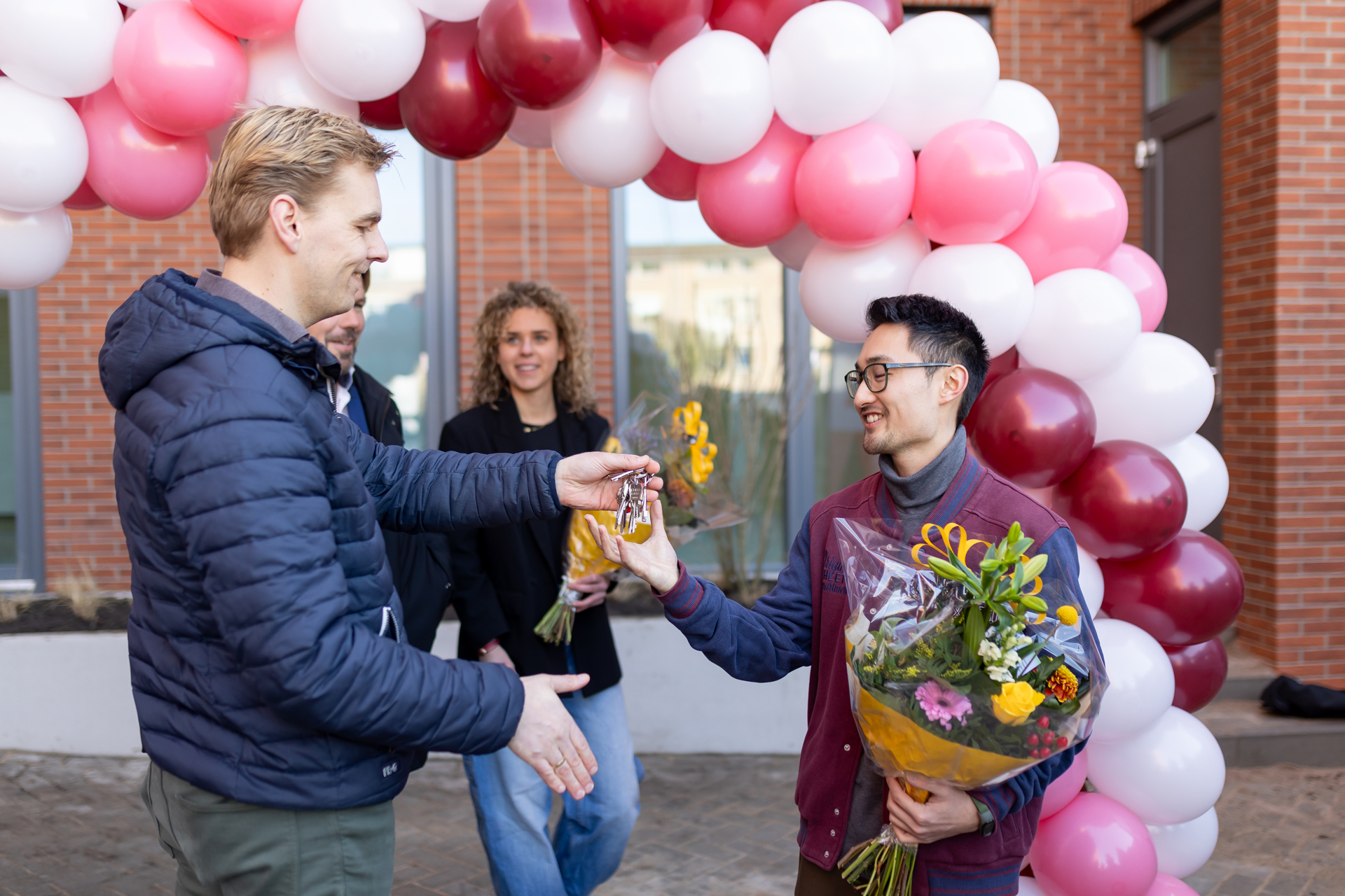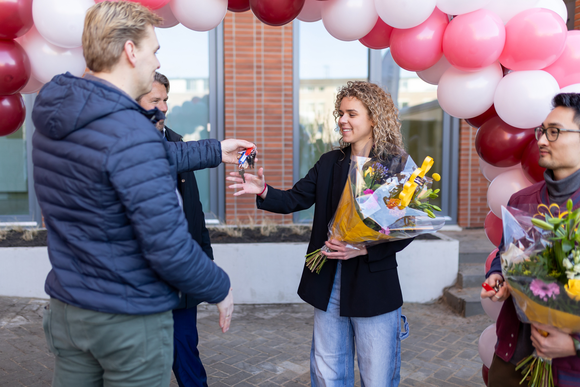 Op woensdag 5 februari ontvingen de eerste 28 jongeren de sleutel voor hun nieuwe woning aan Broekerhof. Het jongerencomplex De Gors aan de Broekerhof in Purmerend bestaat uit 57 appartementen en er is een gezamenlijke daktuin. Twee nieuwe bewoners, Anouk en Jim, werden deze dag in het zonnetje gezet. Wethouders Verkroost en Saaf overhandigden bloemen en Jurre Terhorst, directeur Wonen van Intermaris reikte de sleutels uit.
