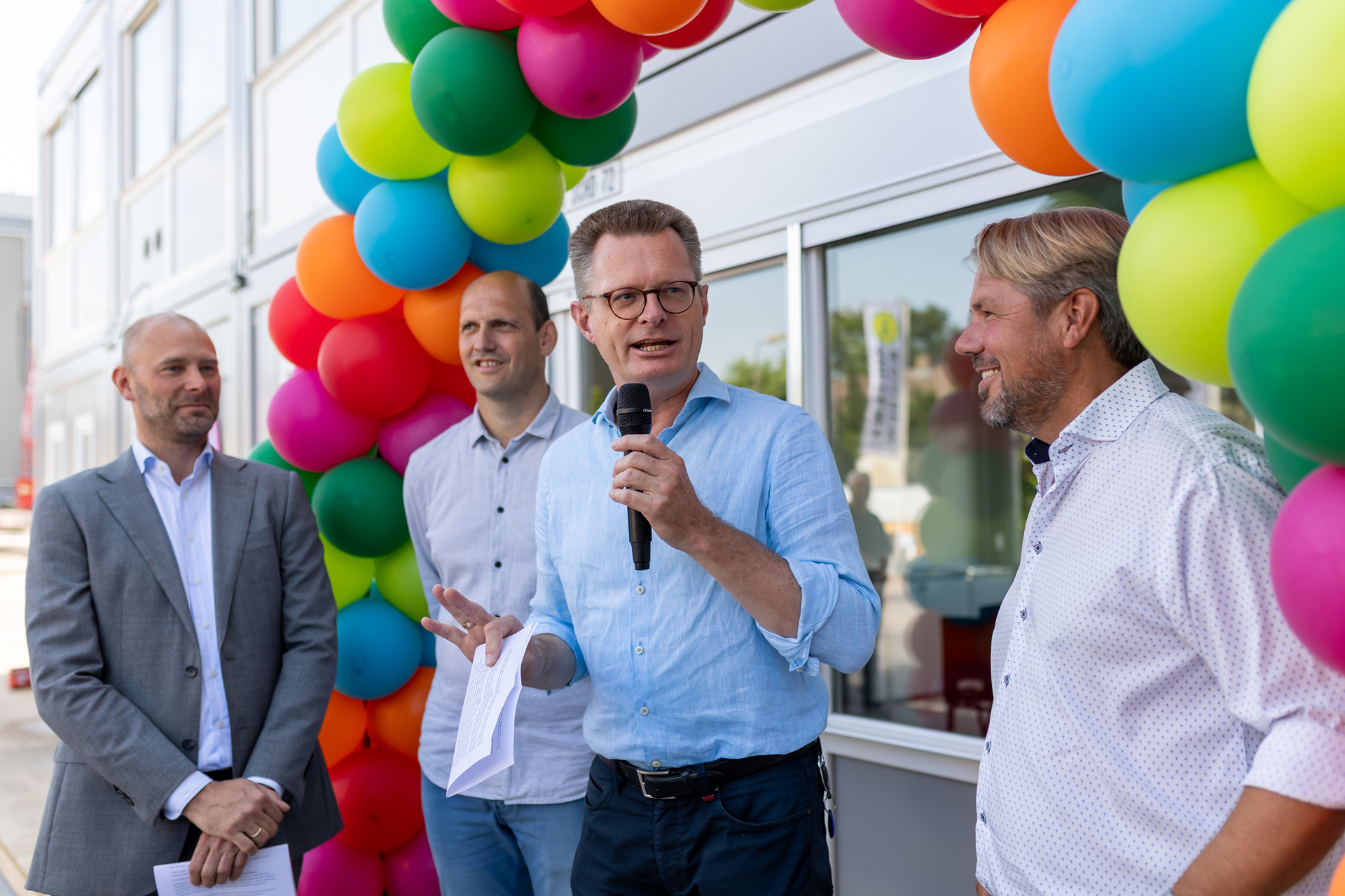 “In Wheermolen-Oost is al veel gebeurd: nieuwe straten, vernieuwde riolering en gerenoveerde flats,” vertelde wethouder Verkroost tijdens zijn toespraak. “De plannen liggen op koers en komende jaren komt er nog veel meer aan, zoals het aanleggen van Park de Dwarsgouw en meer nieuwbouw. Maar vandaag is extra bijzonder, want nu start de bouw van het eerste echte nieuwbouwproject in deze wijk.”