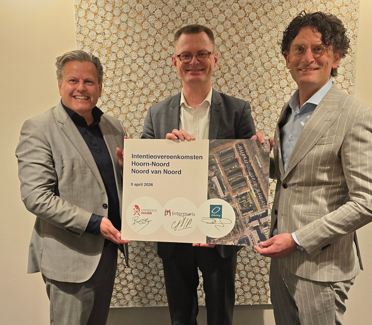 De gemeente Hoorn, zorgorganisatie Omring en Intermaris hebben donderdag 9 april de intentieovereenkomsten ondertekend voor de herontwikkeling van de locatie aan de Sint Jozefstraat, Sint Eloystraat en Sint Chrispijnstraat in Hoorn-Noord. Intermaris wil hier ongeveer 132 appartementen bouwen, verdeeld over sociale huur en het middel dure segment. Omring wil op deze locatie ongeveer 48 zorgappartementen bouwen voor mensen die intensieve en specialistische lichamelijke zorg nodig hebben.