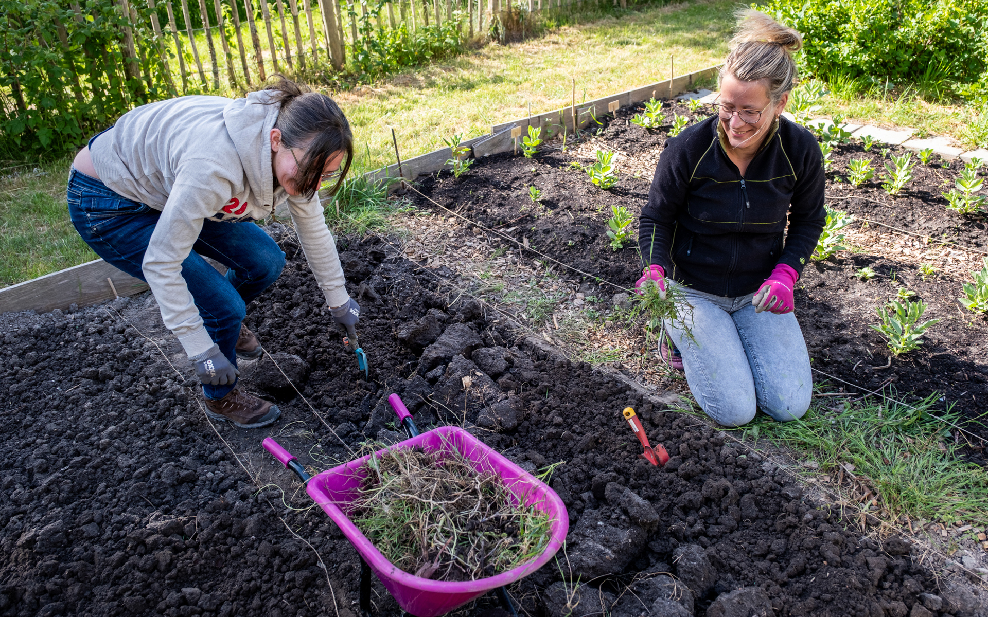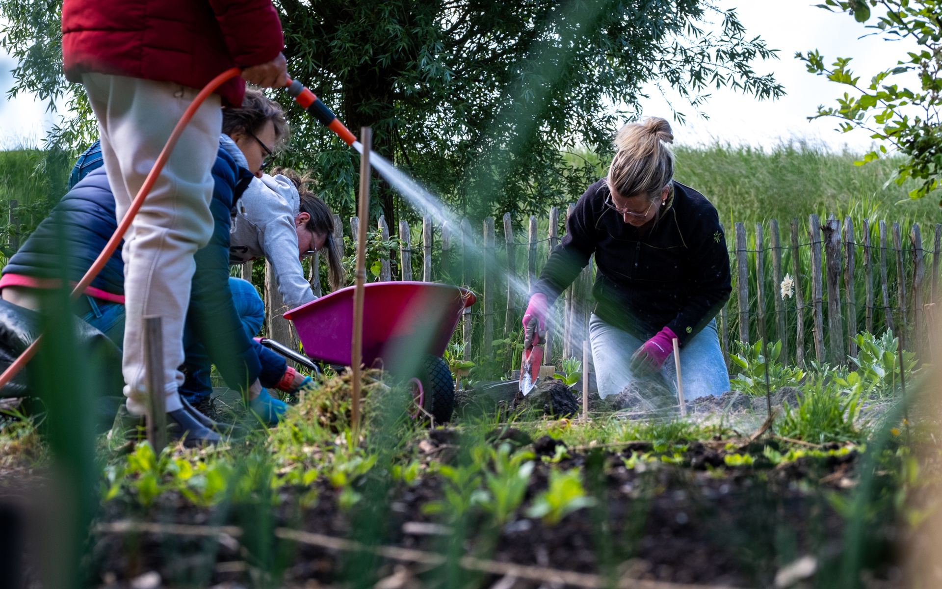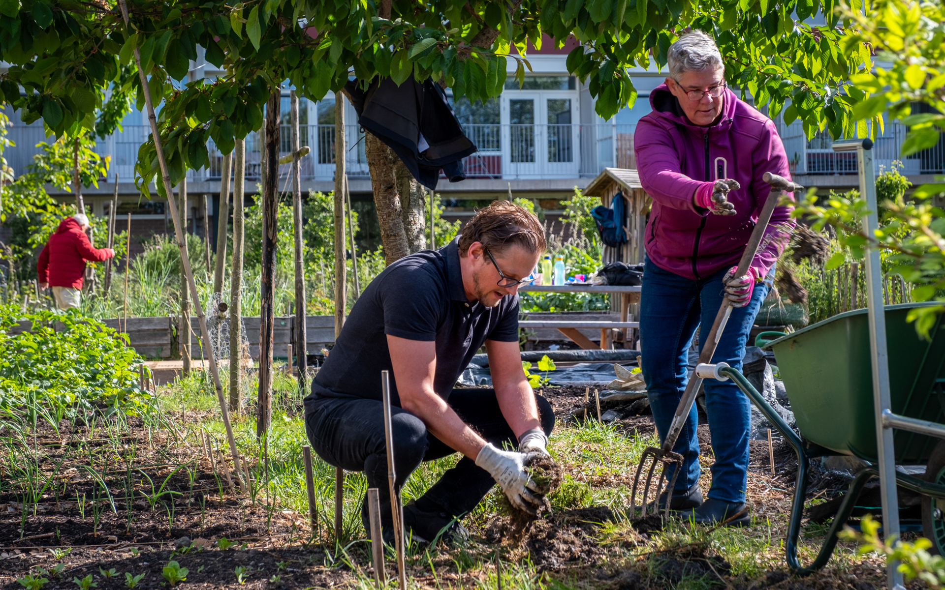Achter Sterflat 2 in de Grote Waal vinden we vier collega’s weggedoken tussen plantbedden. Zij zijn in kindermoestuin Groente Waal. Hier leren kinderen spelenderwijs over natuur, voeding en duurzaamheid. Terwijl de jeugd nog op school zit, bewerken Petra, Sandra, Mark en Joyce de grond. Mark, senior medewerking Accounting: “Ik heb de commerciële sector bewust ingeruild voor een baan bij een maatschappelijke organisatie. Deze actie maakt extra duidelijk dat dit de juiste keuze was.” Vrijwilligsters Marleen en Hanneke zijn blij met de hulp. “Het afgelopen jaar kwamen hier veel nieuwe mensen wonen. Onze moestuin kan wel wat reclame gebruiken. Kinderen, ouders, iedereen is welkom. Wie meehelpt mag meesnoepen!”