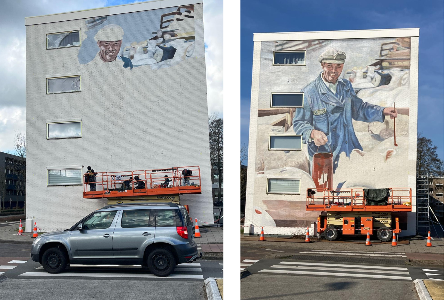 Muurschildering kers op de taart na groot onderhoud flat Kolfstraat