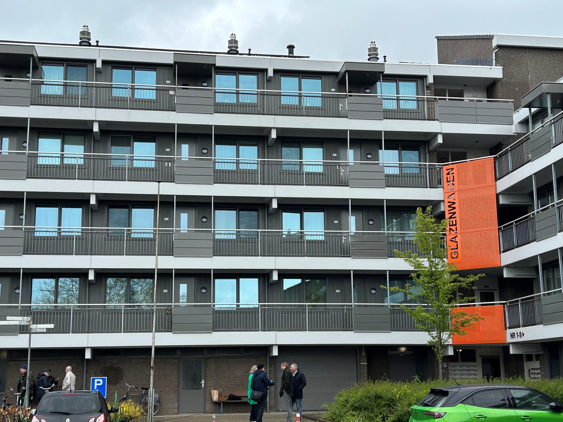 Intermaris heeft de Glazenwagen gerenoveerd. Niet alleen zijn de gebouwen duurzaam en vergroend, de uitstraling is compleet anders. Dit vierde Intermaris op donderdag 25 april samen met de bewoners. De oudste bewoner van het woongebouw, mevrouw Koning, onthulde een fotobord in de hal. En voor alle bewoners was er koffie met wat lekkers.