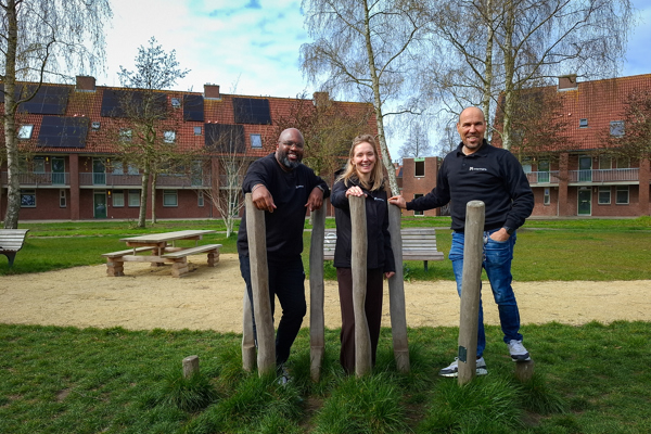 Dit zijn Farley, Ilse en Abdel. Als buurtteam van de Kersenboogerd zijn zij dagelijks in de wijk te vinden. ‘Wij werken heel praktisch’, vertelt Ilse. ‘We spreken bewoners aan als dat nodig is. Als er een probleem is, zoeken we samen naar een oplossing. En als het lukt, betrekken we buurtgenoten hierbij. Samenleven doen we met elkaar!’