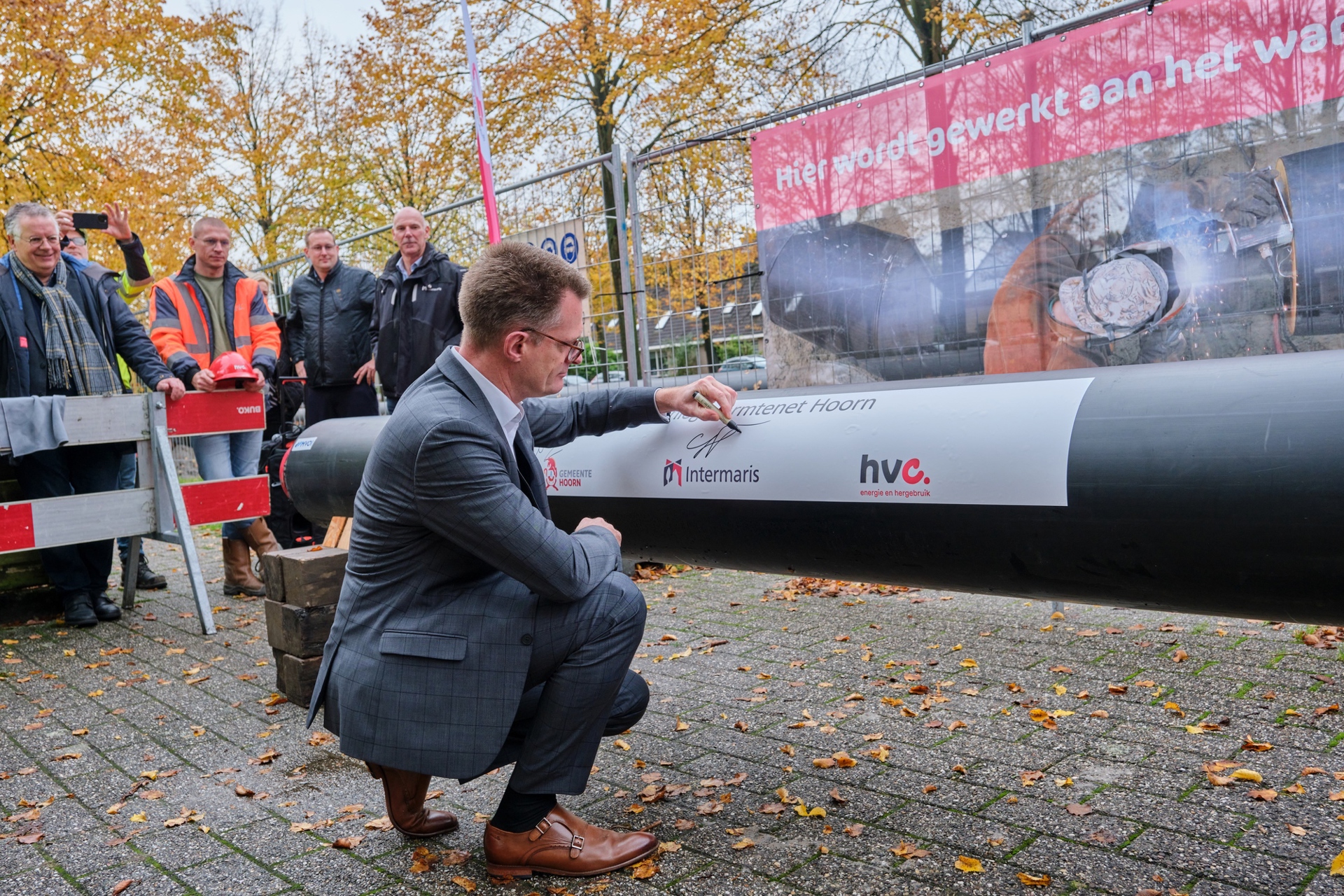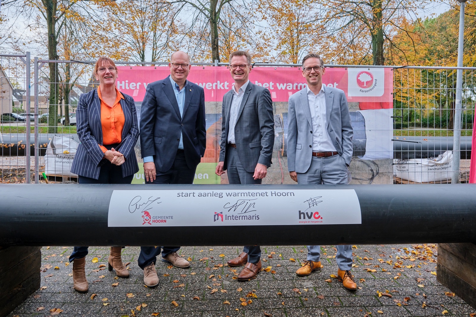 Op woensdag 1 november hebben de bestuurders van de gemeente Hoorn, Intermaris en HVC symbolisch hun handtekening gezet op een warmteleiding. Met deze ondertekening vierden ze de start én de verdere ontwikkeling van het warmtenet in Hoorn. Na de officiële ondertekening in de ochtend, werd deze mijlpaal ook gevierd met bewoners uit het centrumgebied van de Kersenboogerd. Daar is de aanleg van het warmtenet al gestart. Bewoners, ondernemers en bezoekers merken hier iets van. Ruim 50 geïnteresseerde bewoners kwamen langs om onder het genot van een kopje soep de werkzaamheden van dichtbij te bekijken.