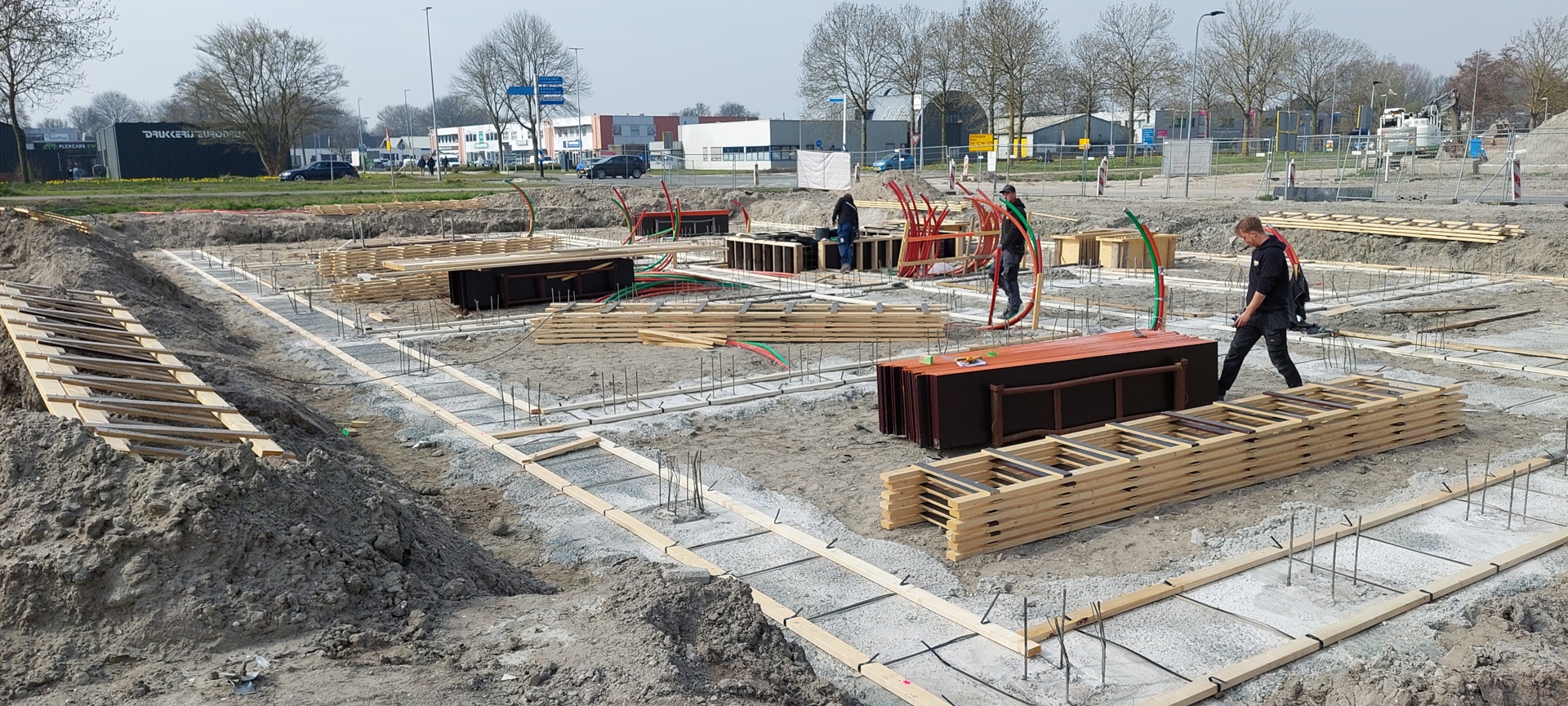 Aannemingsbedrijf Wit Wognum B.V. is bijna gereed met het metselwerk. De pannen worden gelegd. Als dat klaar is, dan gaan de steigers zakken en worden de kunststof kozijnen gemonteerd. Binnen zijn ze druk bezig met de afbouw. Op de vijfde verdieping is de stukadoor bezig en op de derde verdieping de tegelzetter. Binnenkort wordt er gestart met het spuitwerk op de wanden en plafonds.